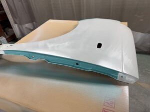 今回はホンダCR-Zのリアバンパー修理をアップします。まずは修理後の写真です。色が全然違いますが同じ車です。リアバンパーの傷を直して、一本塗装します。バンパーの下に付くパーツも修理します。片側のフェンダーに修復歴があり左右で色が違うので、右左それぞれで色を合わせます。左右でこれだけ色が違います。塗りあがりです。バンパー組んで完成です。ありがとうございました。******************〒326-0338 栃木県足利市福居町1261-1AUTO BODY SHOP MIYAMOTOTEL 0284-72-5380FAX 0284-72-5385e-mailHP営業時間 AM9時~PM5時(定休日 日曜、祝日)インスタグラムフェイスブック****************** -