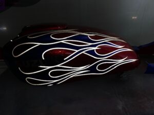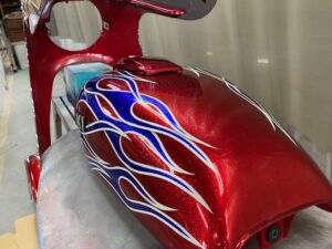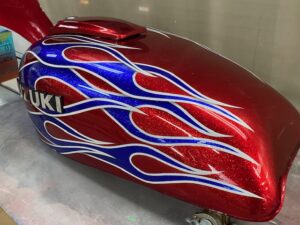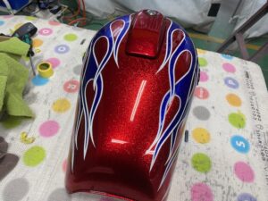 この色の上からカラークリヤを塗り重ねて赤の深みを出します。