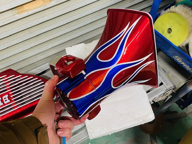 先に中を塗装してから外側を塗ります。塗りあがりです。磨いて組んで完成です。ありがとうございました。******************〒326-0338 栃木県足利市福居町1261-1AUTO BODY SHOP MIYAMOTOTEL 0284-72-5380FAX 0284-72-5385e-mailHP営業時間 AM9時~PM5時(定休日 日曜、祝日)インスタグラムフェイスブック****************** -