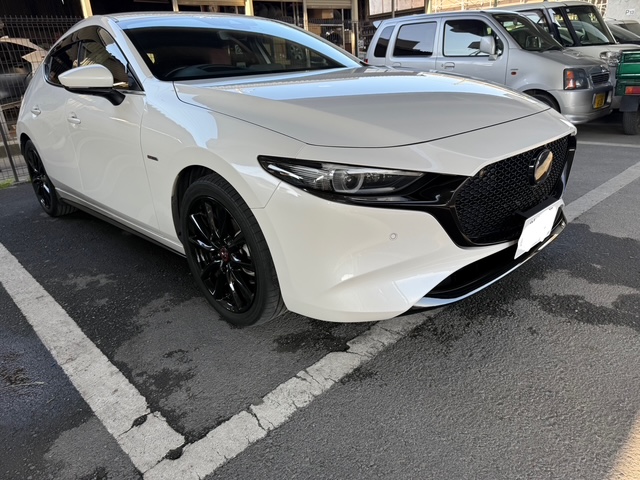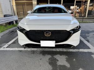 宜しくお願いします。今回はマツダ3のプチカスタムをアップします。わかる人にはわかるカスタムです。フロントバンパーとサイドカバーの素地の部分をツヤツヤの艶あり黒にしました。素地部分にサフェーサーを塗って素地のザラザラをツヤツヤにして、黒を塗装します。ナンバーの取り付け位置も変更しました。ネットから拝借した写真でビフォーアフターをナンバーの位置が低くなって、一番下の黒い部分が艶消しから艶あり黒になりましたありがとうございました。******************〒326-0338 栃木県足利市福居町1261-1AUTO BODY SHOP MIYAMOTOTEL 0284-72-5380FAX 0284-72-5385e-mailHP営業時間 AM9時~PM5時(定休日 日曜、祝日)インスタグラムフェイスブック******************