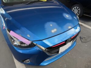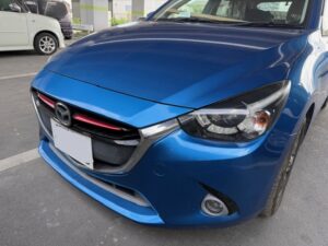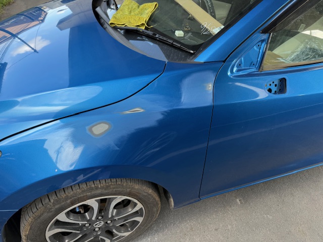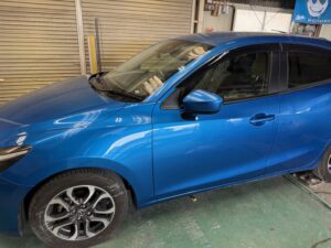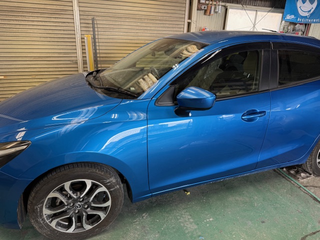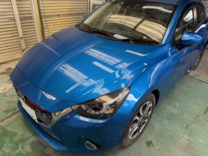 demio. mazda へこんだだけでへこむのはまだ早い デミオ マツダ 小傷修理 青 | 足利市 車修理 車整備 宮本自動車 | 太田、桐生、佐野の方もご用達!足利のオートボディショップミヤモト