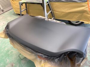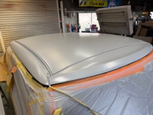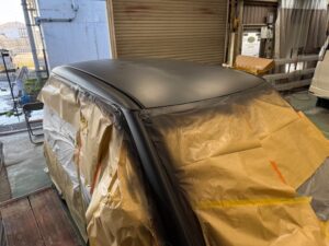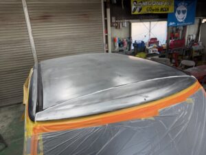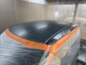 こちらのお車はボンネット、屋根、ピラーの塗装劣化で塗り直しの作業でした。