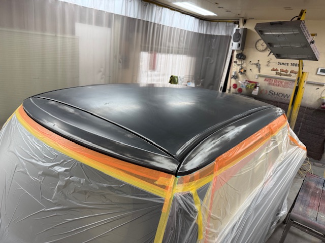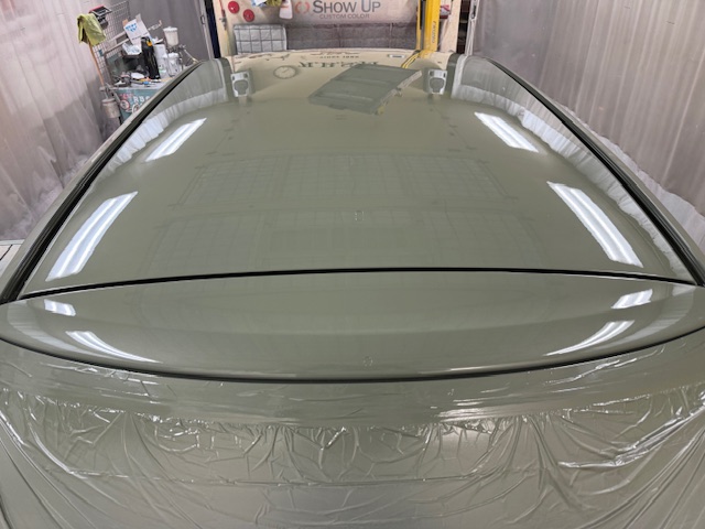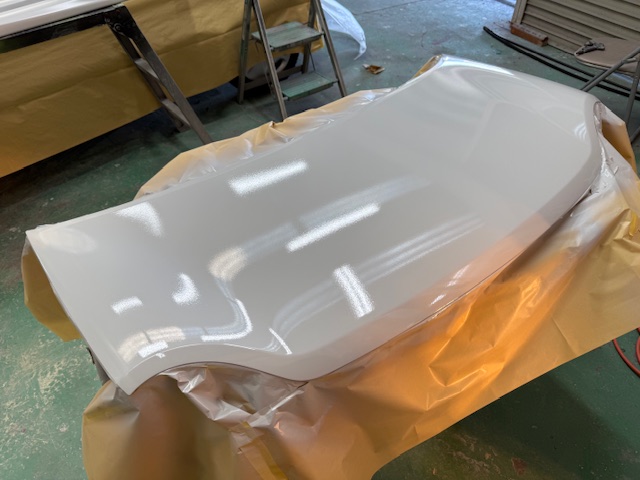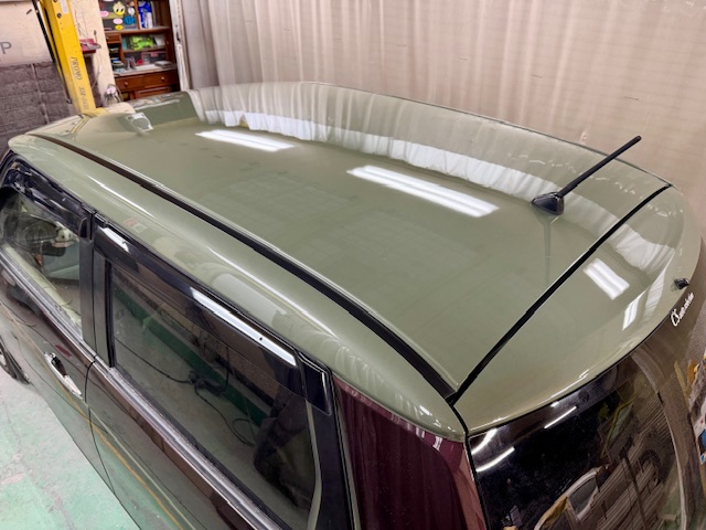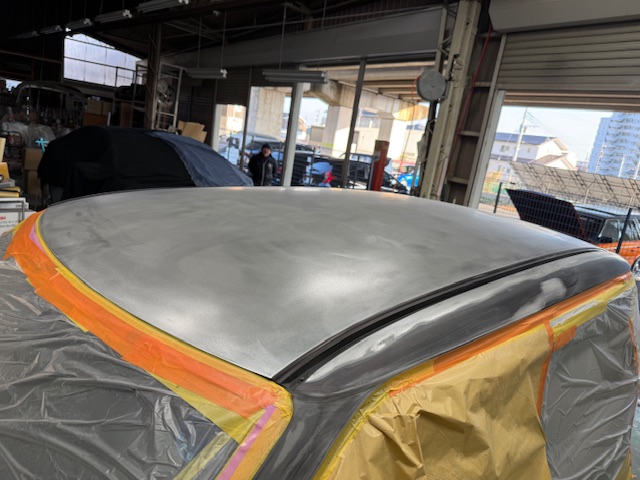 こちらのお車はボンネット、屋根、ピラーの塗装劣化で塗り直しの作業でした。