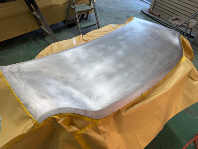 まずは塗膜が劣化してしまったボンネット、屋根、ピラーの色を剥がします。