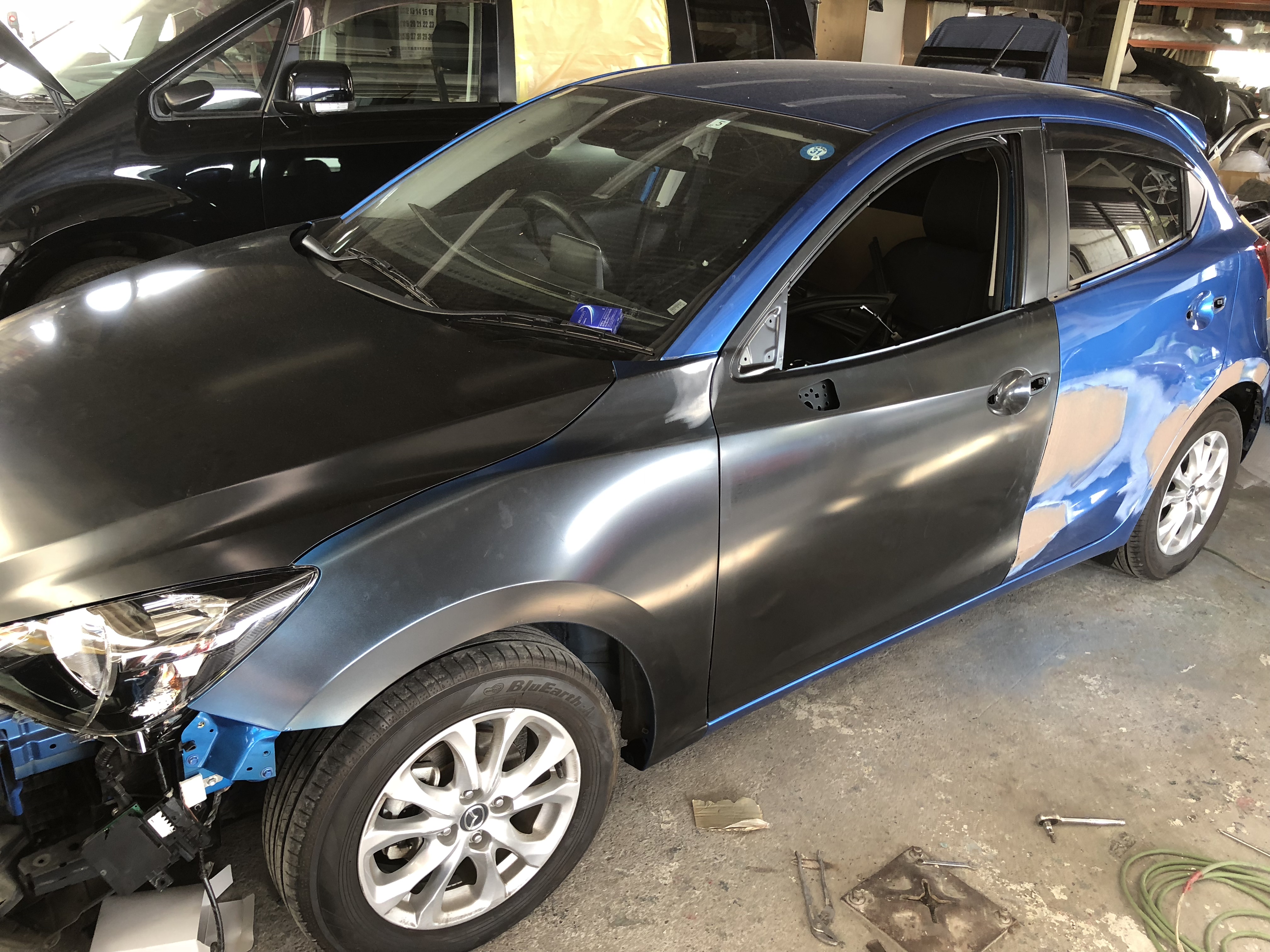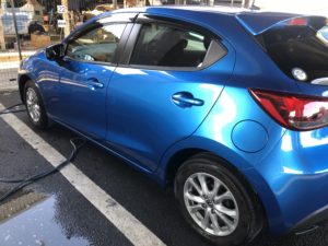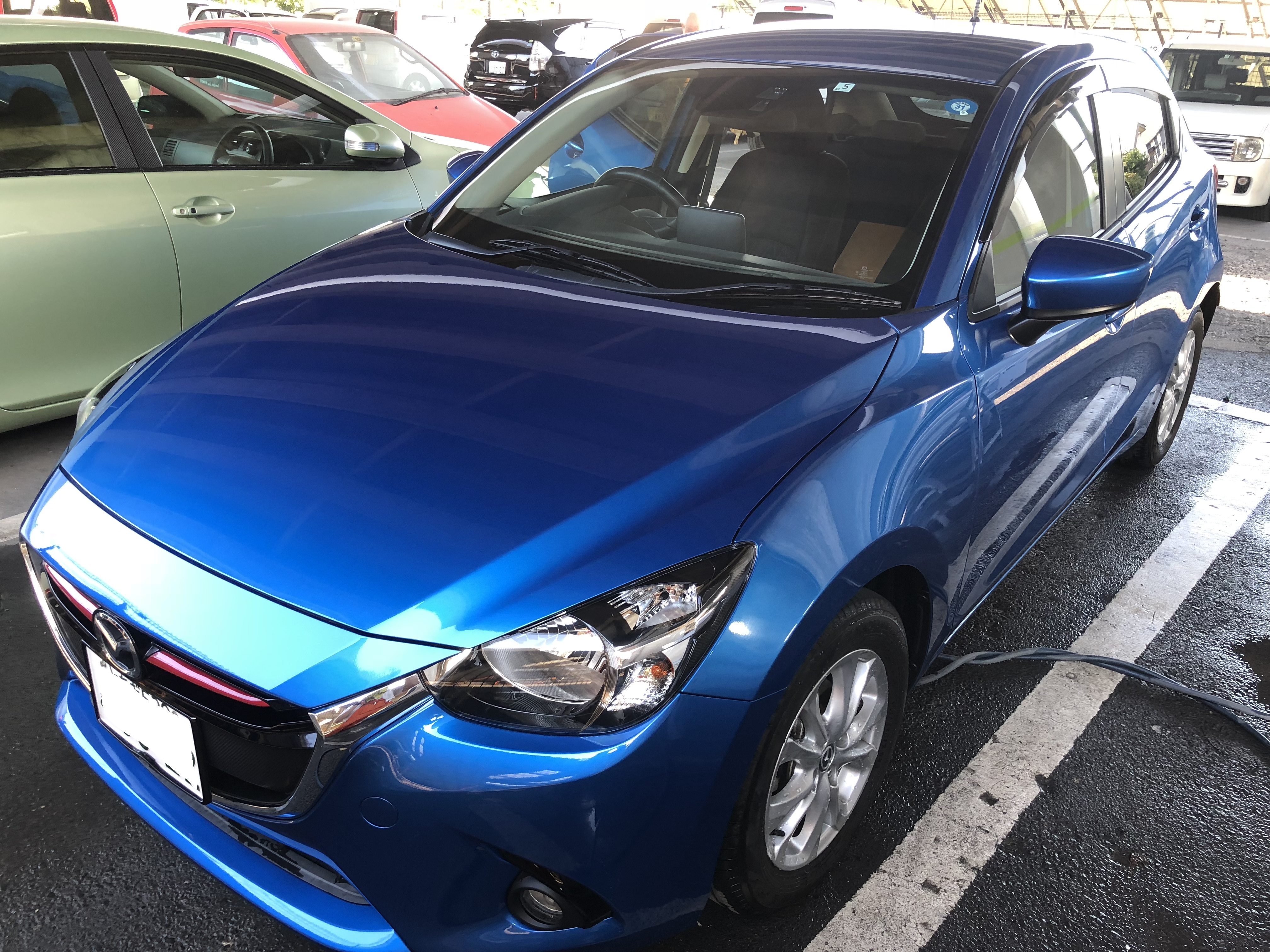 demio. mazda マツダ、デミオ、青、ダッシュボード、スイカ | 足利市 車修理 車整備 宮本自動車 | 太田、桐生、佐野の方もご用達!足利のオートボディショップミヤモト