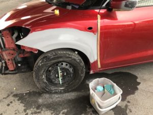 なのでいきなりサフェーサーです😅この色は少し特殊で3コートでカラークリアーを塗装します。