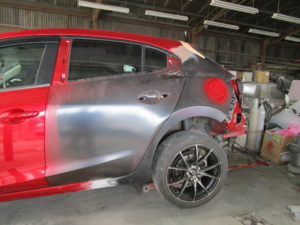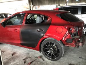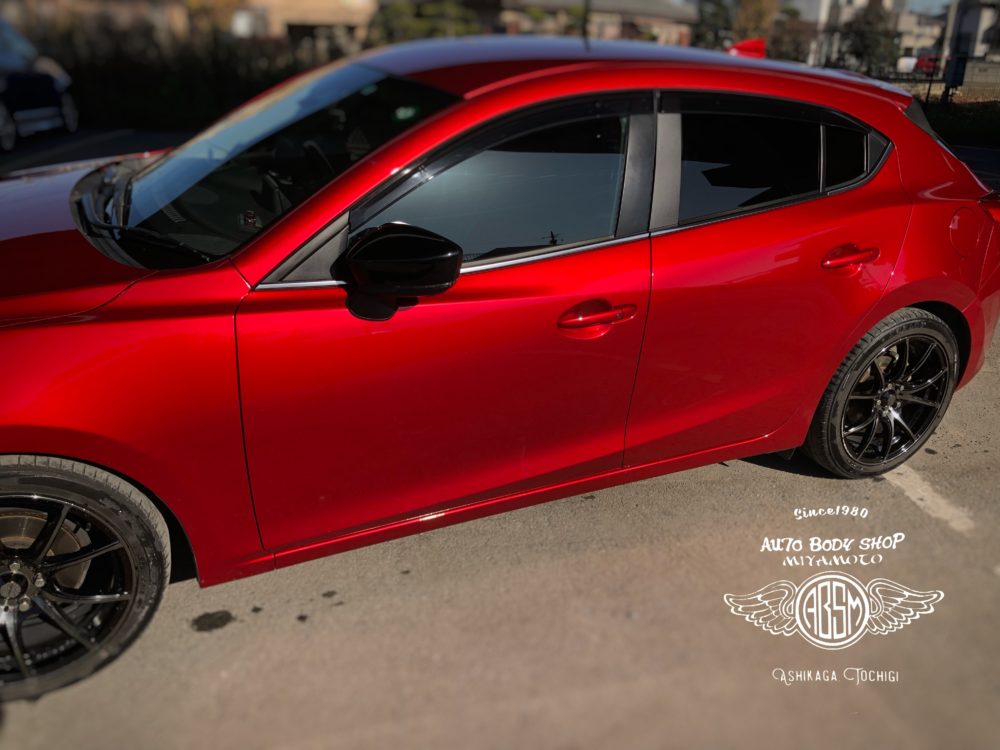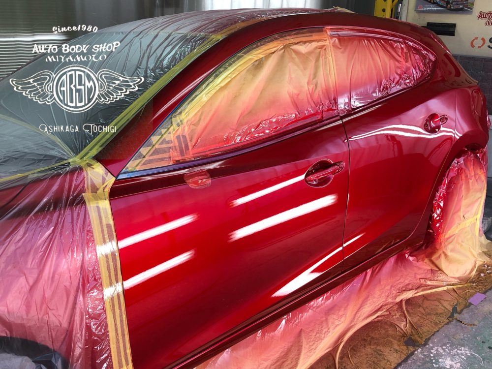mazda アクセラ ソウルレッドプレミアムメタリック マツダ 交換 塗装 | 足利市 車修理 車整備 宮本自動車 | 太田、桐生、佐野の方もご用達!足利のオートボディショップミヤモト