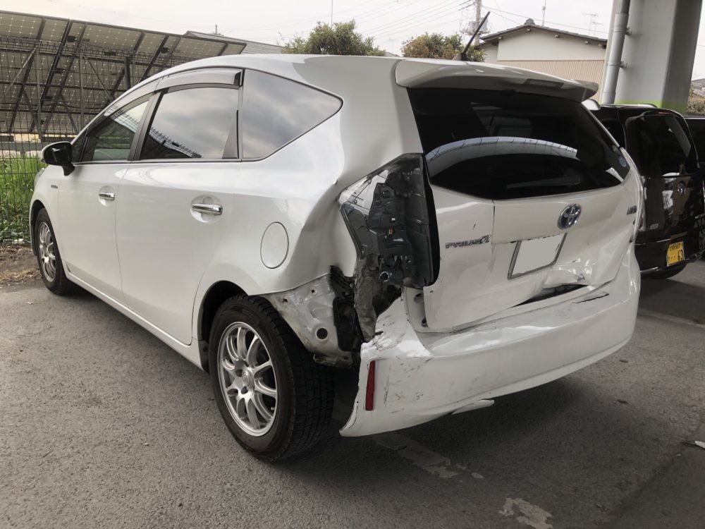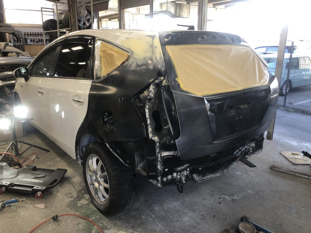 プリウスαのリアクオーター交換です🙂バンパーは塗装済み新品です🙂