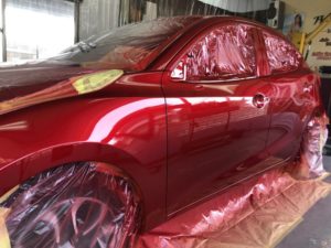 41v demio. mazda ソウルレッドプレミアムメタリック デミオ ドア交換 マツダ | 足利市 車修理 車整備 宮本自動車 | 太田、桐生、佐野の方もご用達!足利のオートボディショップミヤモト