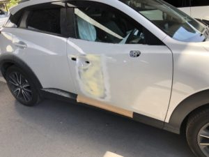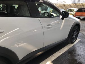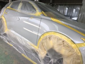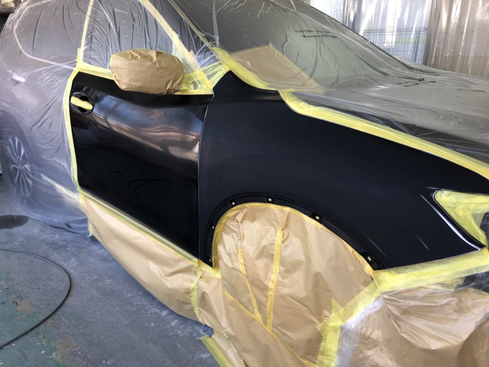 バンパー交換、フェンダー交換、ドア干渉傷修理です👍🏼バンパーは色つき新品なので、塗装はフェンダー、ドアのみです😌