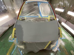 ボンネット剥離、キズ凹みの修理を経て塗装です😌👉🏻