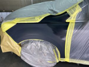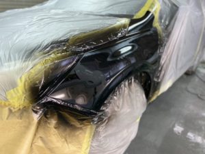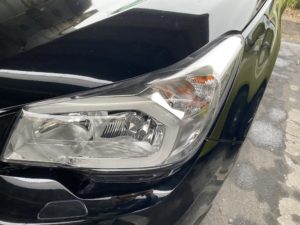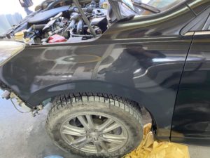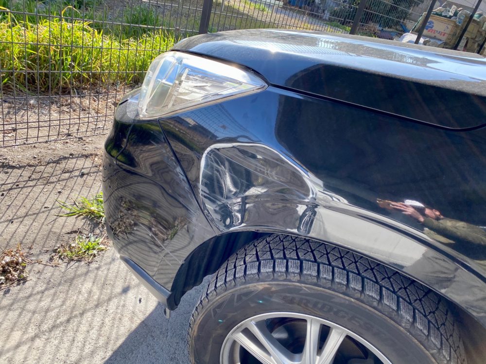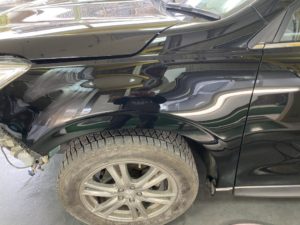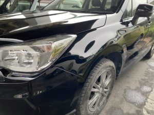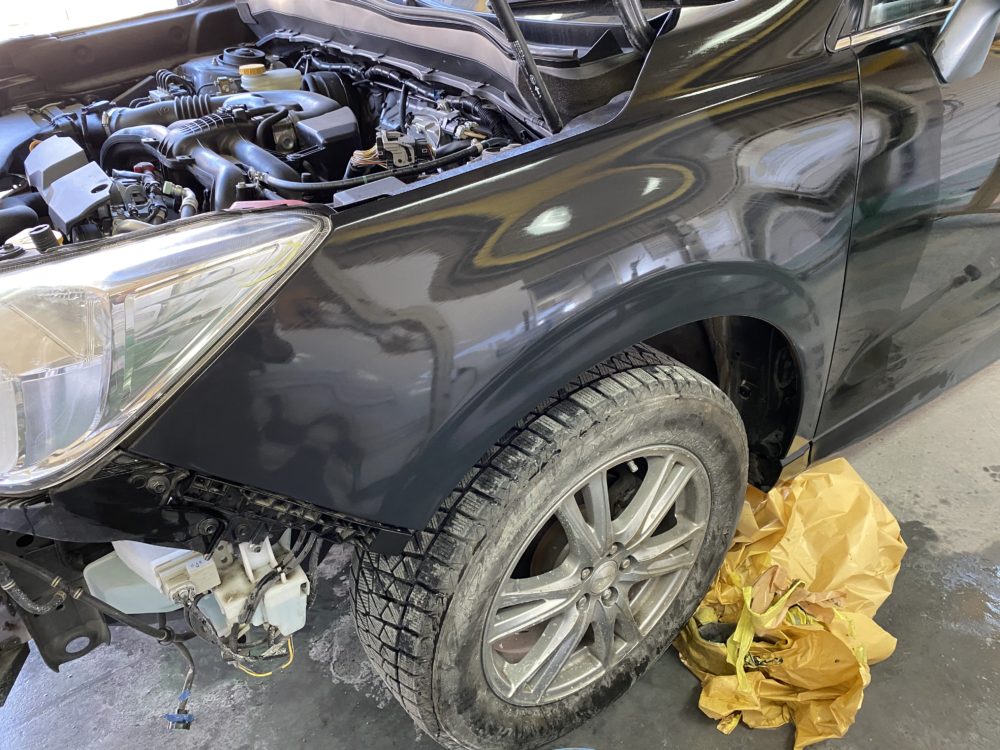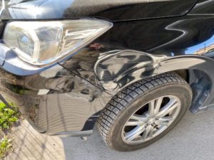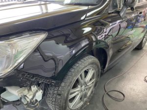 作業内容は左フロントフェンダー鈑金、バンパー交換です❗️