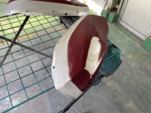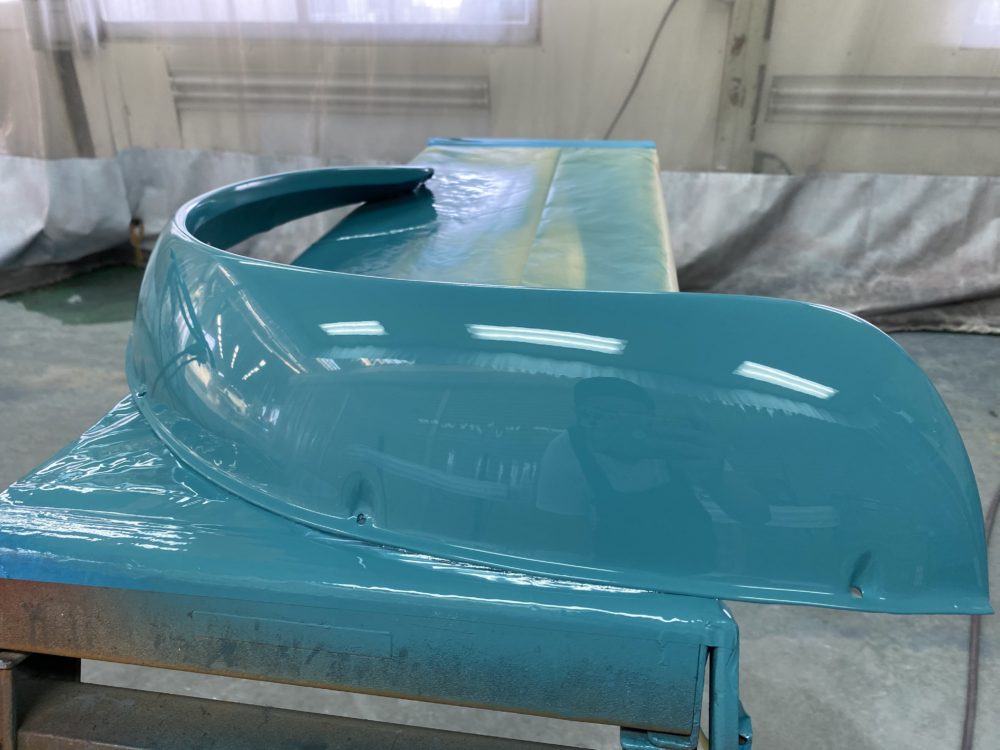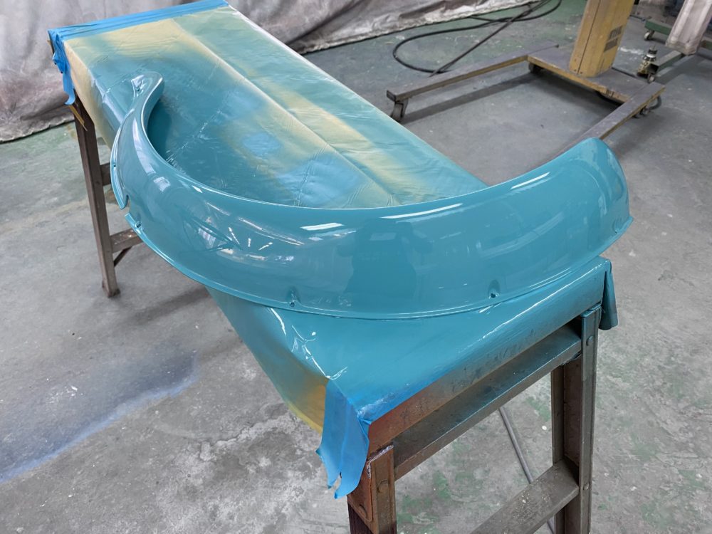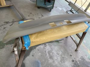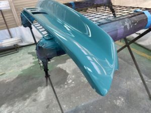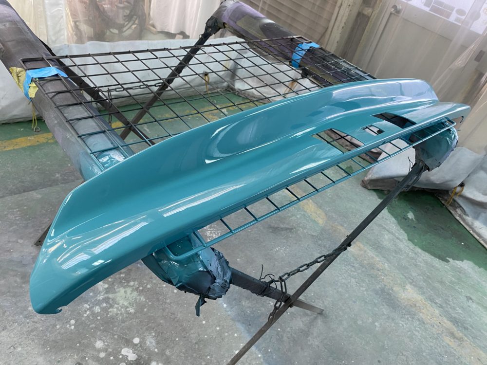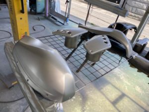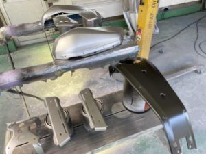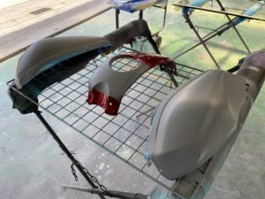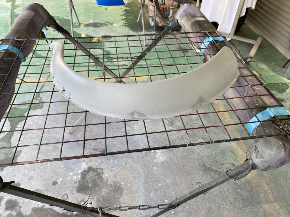 オーバーフェンダーとフロントスポイラーの作業です🔸サフェまで処理が終わり色合わせをして、これから塗装です😊