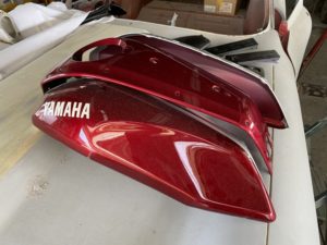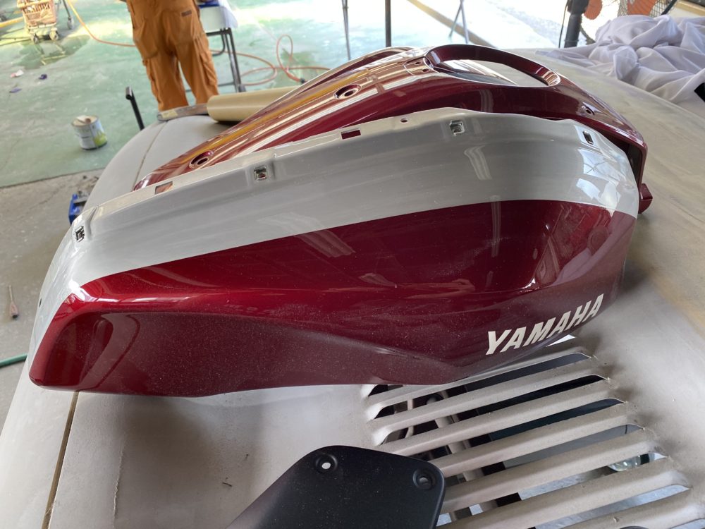 YAMAHAの文字と塗りわけの段差を処理してサフェーサー😊