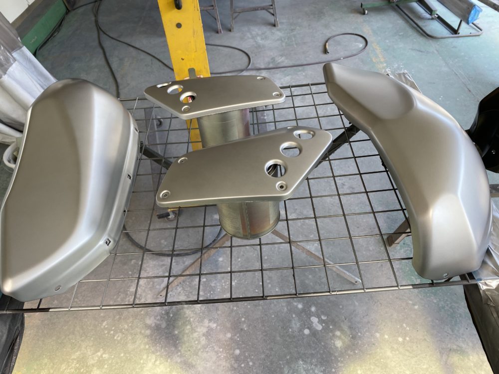 このオートバイにはマットグレーという外装色があるのですが、それはアルミにマットクリヤーが吹いてあるので