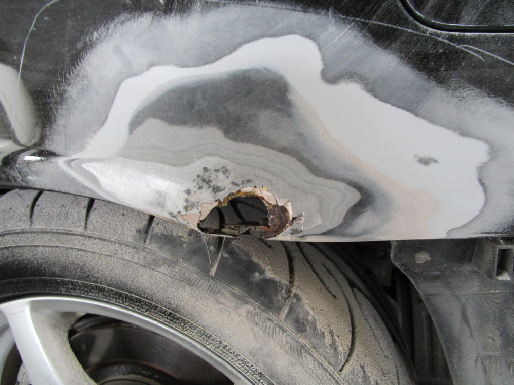 リアフェンダーは錆びて穴があいていたので、鉄板を貼りなおして処理👌🏻