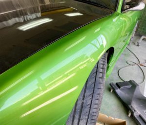 全塗装されている車両なのでカラーナンバーがわからないのですが、調色カメラでパチリと撮ってカラーデータの測定をしてもらいそのデータ通りに色を作って色もばっちり合います😍
