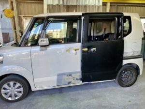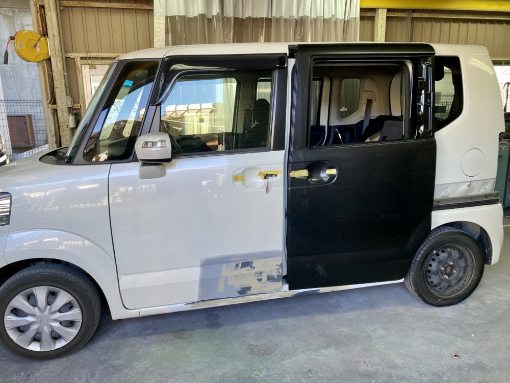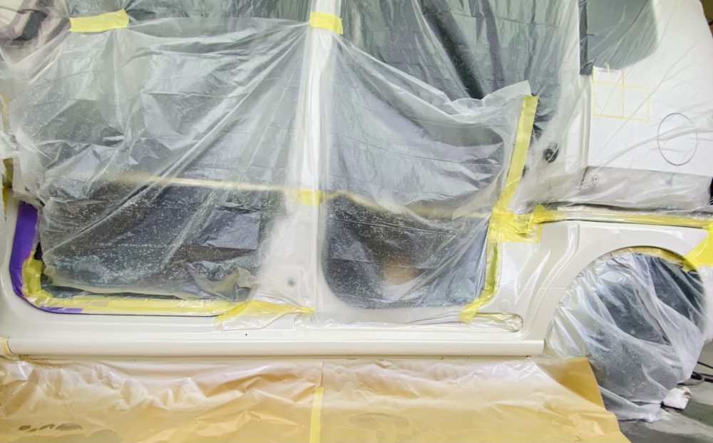 今日は色々手直ししてステップリヤクォーター塗装✨ スライドドアは裏側塗りました👍