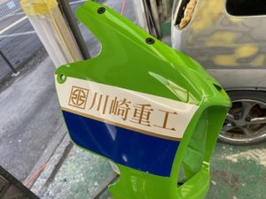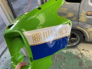 ステッカーと同じ色に調色したパールホワイトを塗装します😄