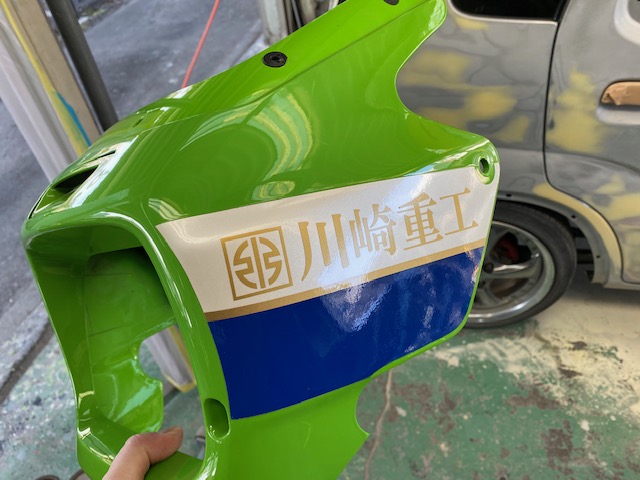 サイドのパールホワイト、ゴールド、ブルーのラインは一枚のステッカーです😉右側のパールホワイトのところは破れてしまっていたのですが、もうステッカーが買えないのでパールホワイトのところは塗装で対応しました😊👌