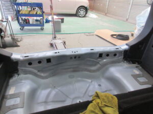 フロアが形になったら、新品のバックパネルを溶接でつけます。