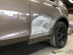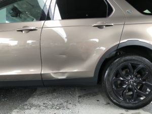 鈑金塗装とはぶつけて傷ついてしまったお車を直す仕事です。こんな風に凹んでしまった車を