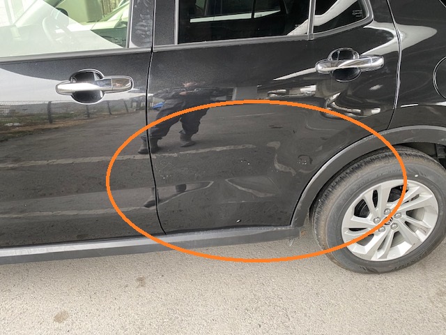 丸の部分のへこみの修理です。