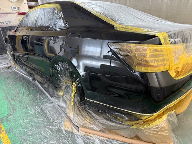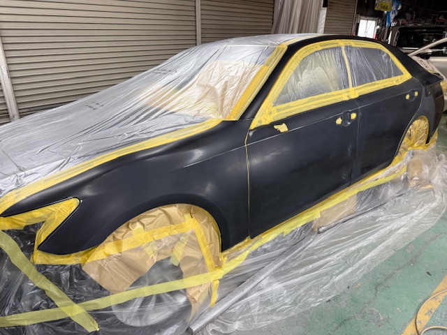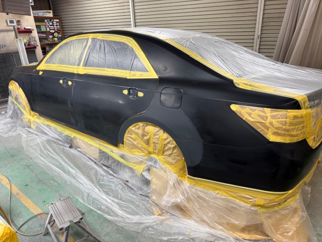 マスキングを剝がして足付けをして全体にクリヤを塗ります。
