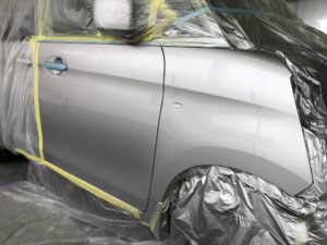 塗装ブースの中ではパンツまで汗でびっしょりです😅携帯電話が汗で水没しそう😭