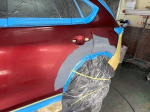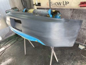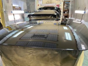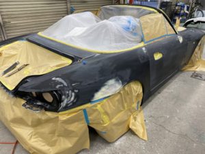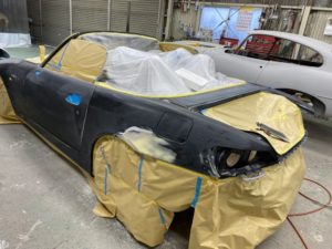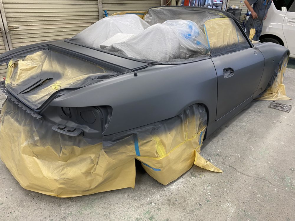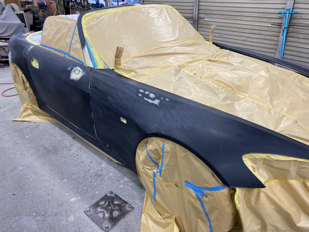 全塗装中のS2000はキズ、へこみの処理が終わり、サフェーサー入りました😁✌️