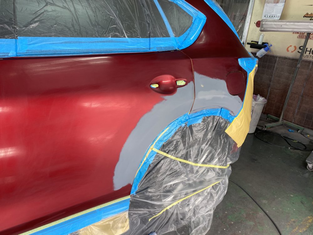 その上に赤のカラークリアをぼかしつつ何度も塗り重ねて、赤く染めていきます😄