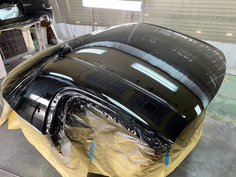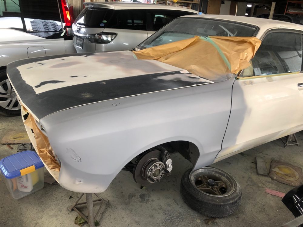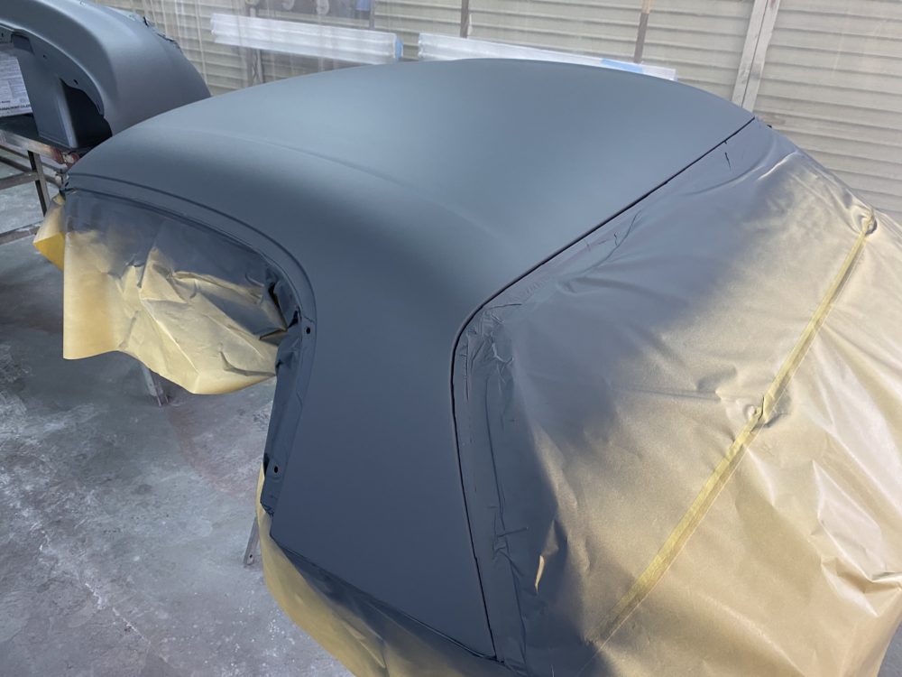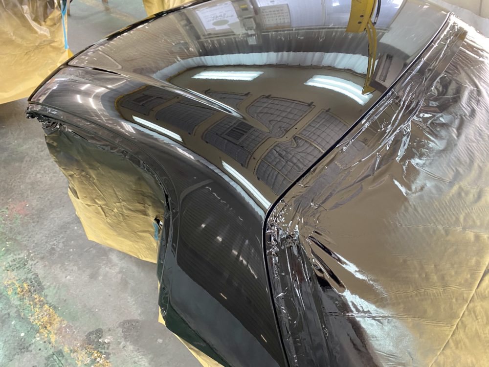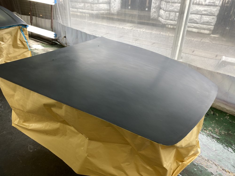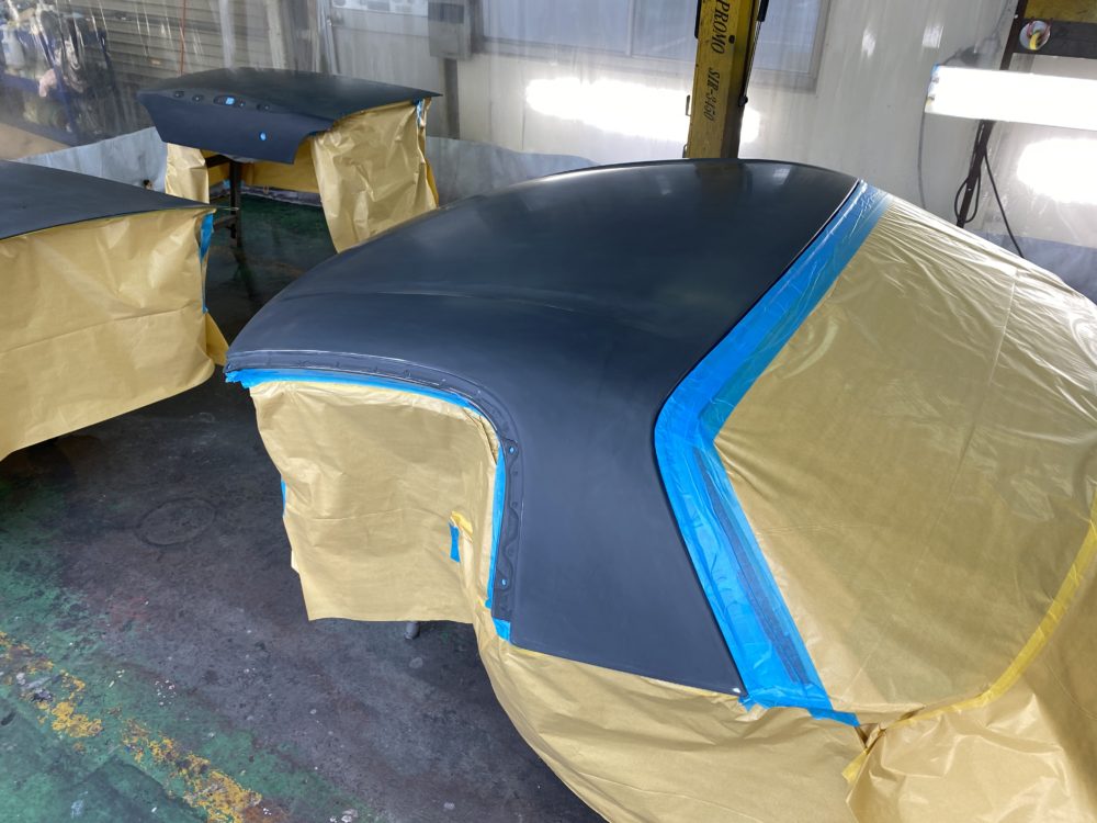 完成したらビフォーアフターをきちんとアップしますね👍🏻サフェーサーを丁寧に研ぎ終えた、ボンネット・屋根・トランク・リアバンパーを塗装しました‼️