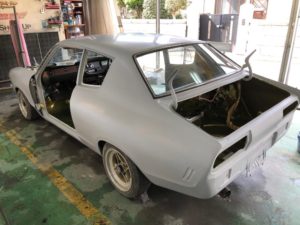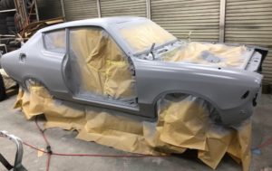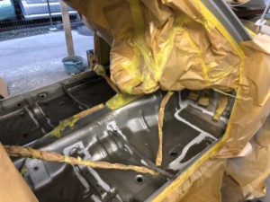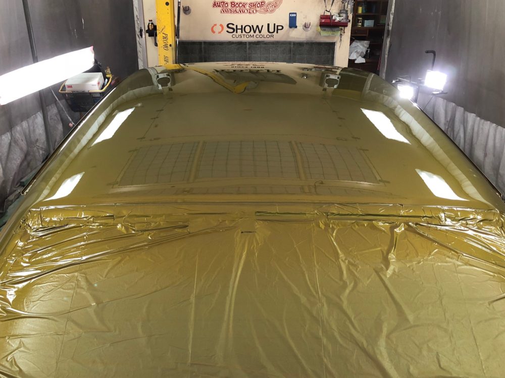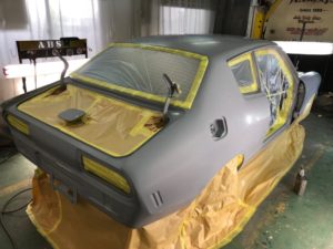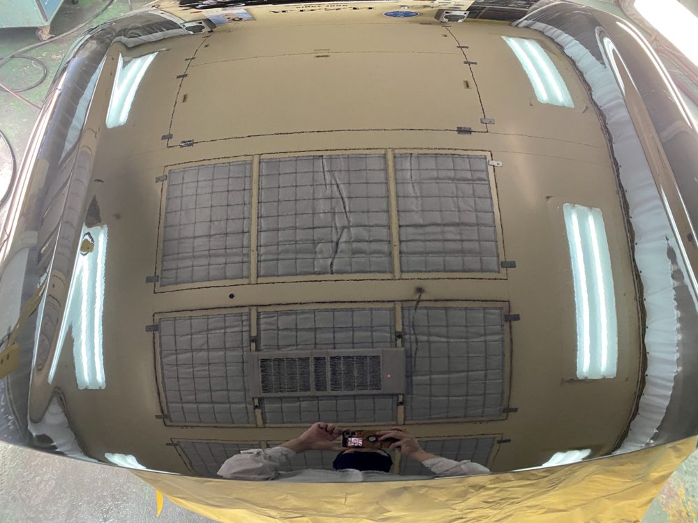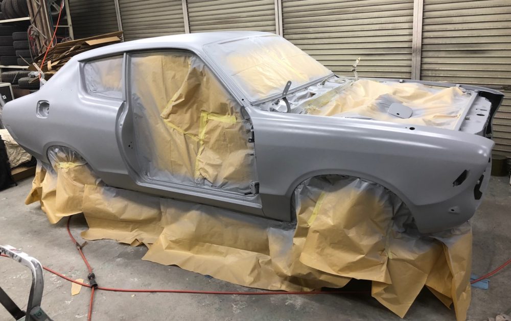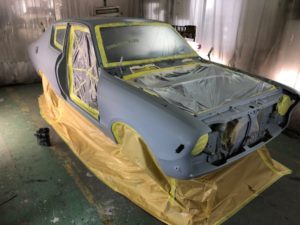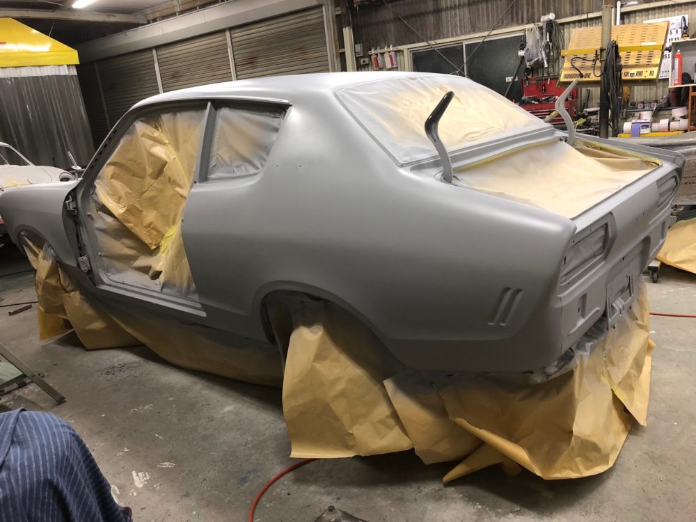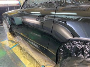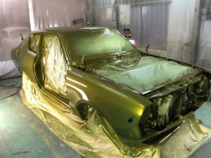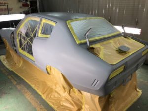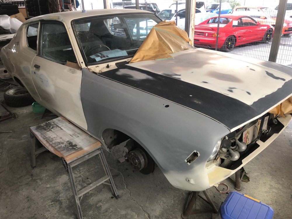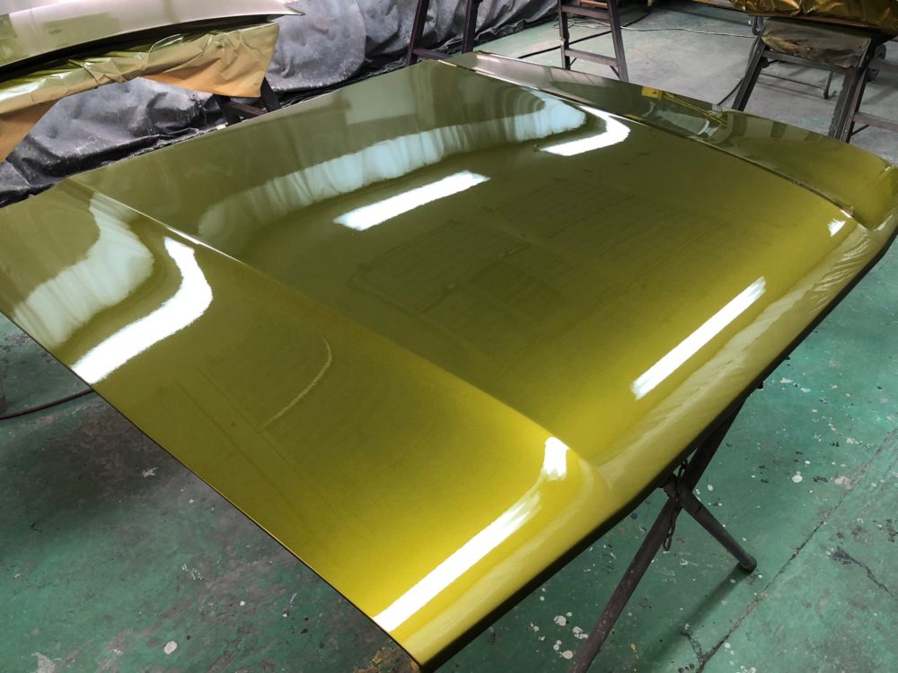 完成したらビフォーアフターをきちんとアップしますね👍🏻サフェーサーを丁寧に研ぎ終えた、ボンネット・屋根・トランク・リアバンパーを塗装しました‼️