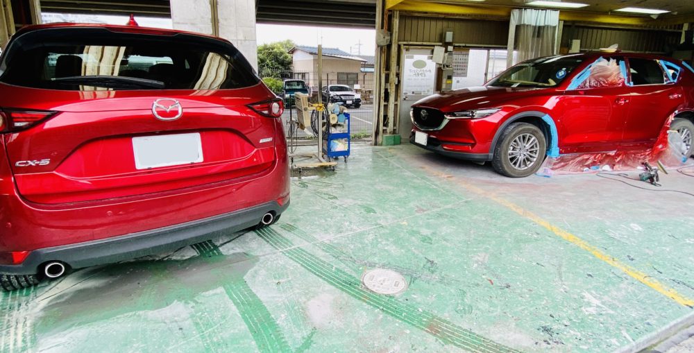 今日は先週修理したCX-5と同じ色、ほぼ同じ場所の修理をしたCX-5と全塗装作業中のS2000アップします😄👍🏻