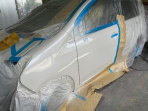 リアドア裏塗り後組み付けて、フロントドアは面の出具合を見ながら直します😊塗装途中です🎶