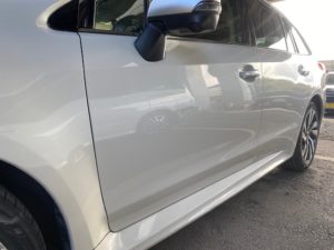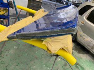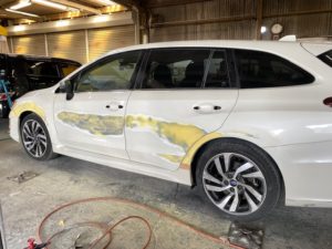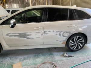 保険修理でフロントバンパー交換、それと一緒に側面の傷を自費修理させていただきました🎶今回は側面修理の様子を👉