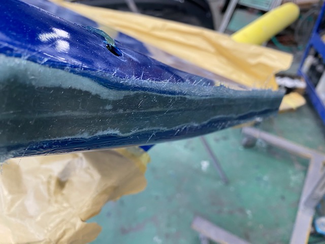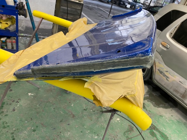 もとの状態より強度を持たせるために外側には一枚多くFRPのシートを巻きました👌そしてパテで成形していきます🎶