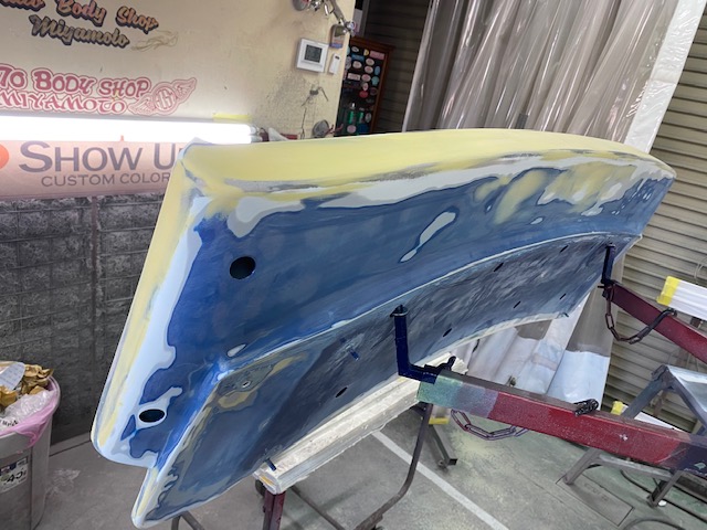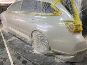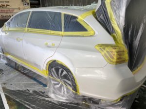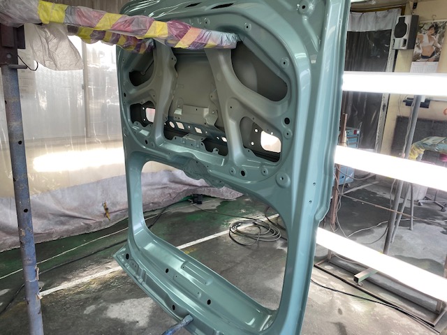 この車はツートンなので、クリヤー乾燥後マスキングして二色目を✌️