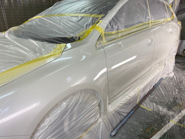 右フロントフェンダー・フロントバンパー・左フロントフェンダー・前後ドア・リアクォーター・リアバンパーの修理です☺️