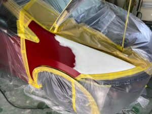 赤は染まらないので、プライマーを吹いてから白を吹きます😊