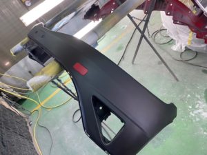 新品バンパーは未塗装素地色の黒です🎶
