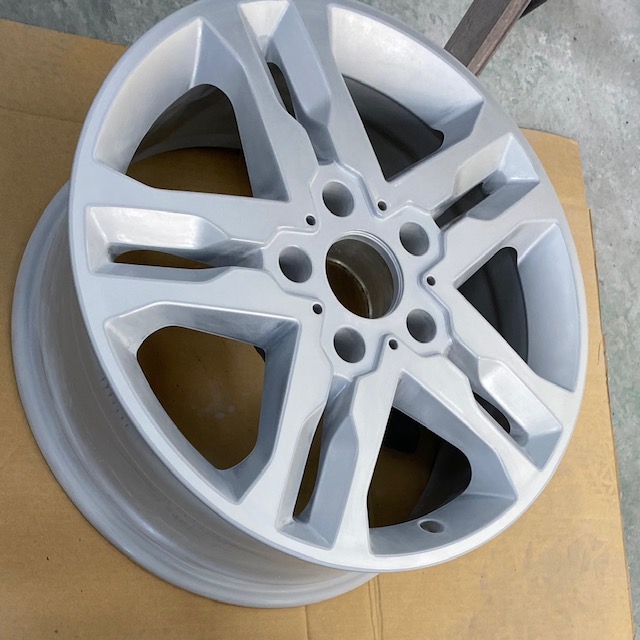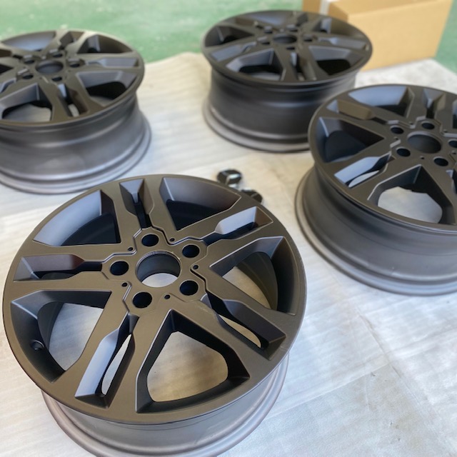 今回はベンツのホイールを塗装させて頂いたのでそちらをアップします。艶ありシルバーの純正ホイールを艶消し濃いめのガンメタにしました。完成写真です!塗装前はこの色でした。ありがとうございました。 -