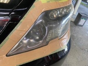 作業内容はトランクの塗膜劣化の修理とヘッドライトリペアです。