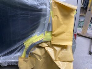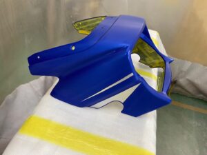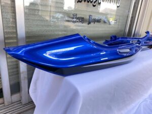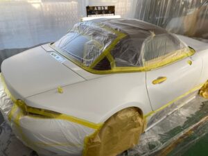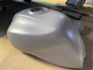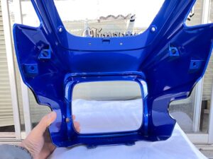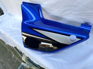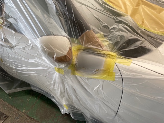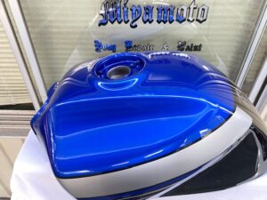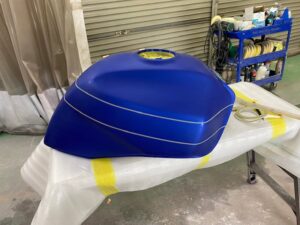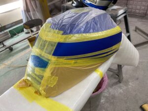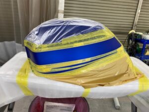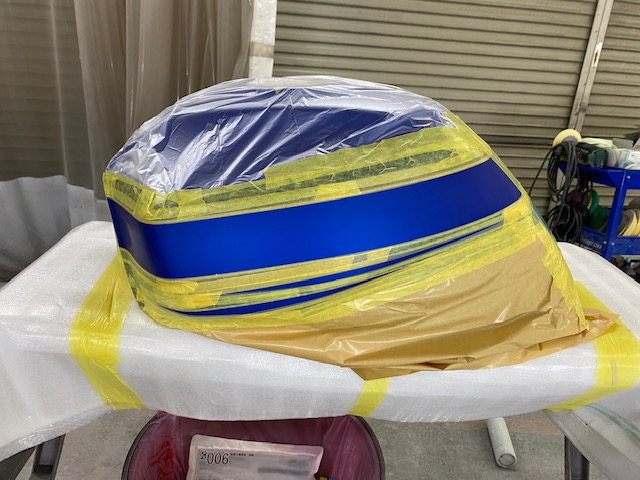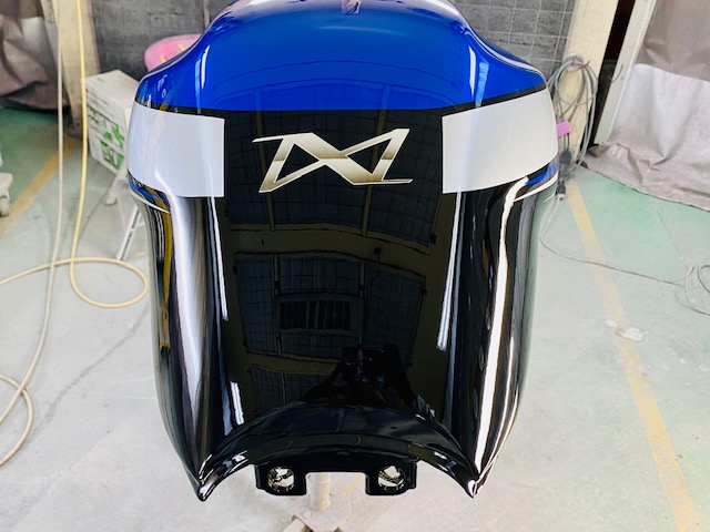 この状態でクリヤー塗装をして、乾いたら足付けして黒の部分もマスキングをし塗装。