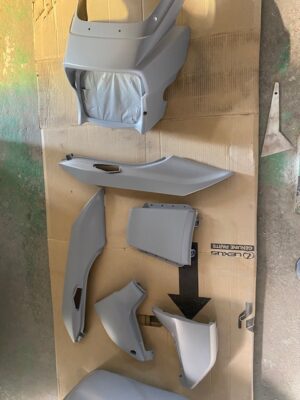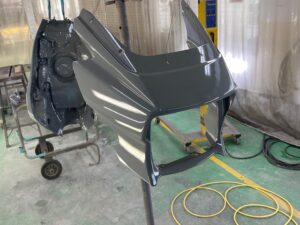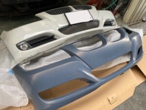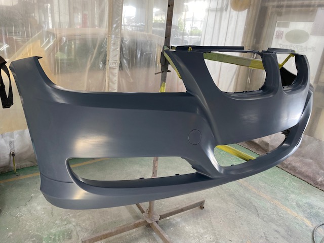 新品バンパーはグレーのサフェーサー状態で届きました。