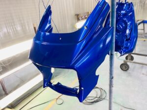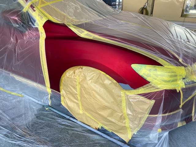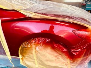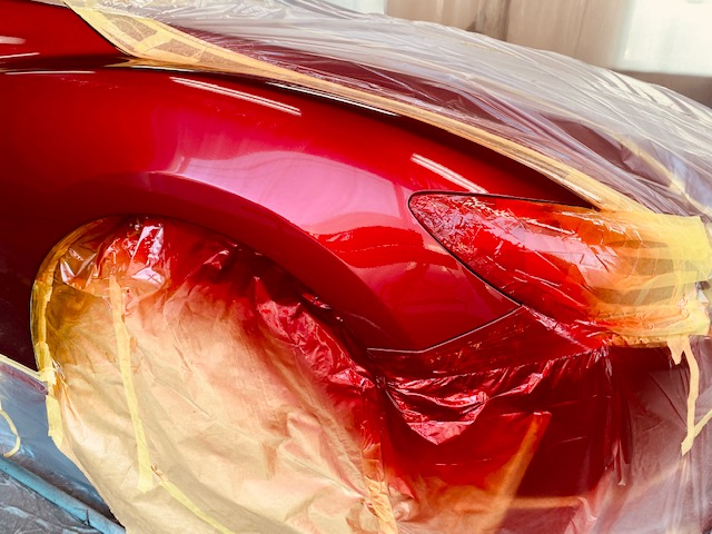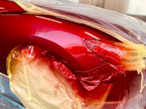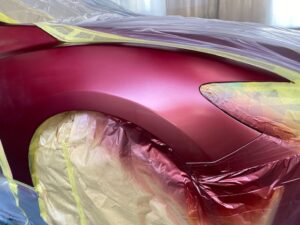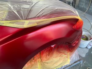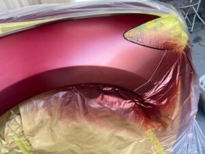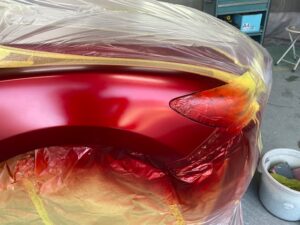 その後このカラークリヤを数回塗り重ねて深みのある赤にしていきます。