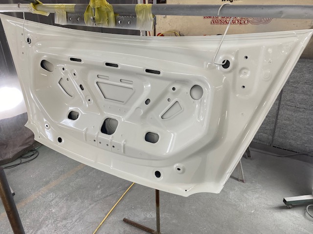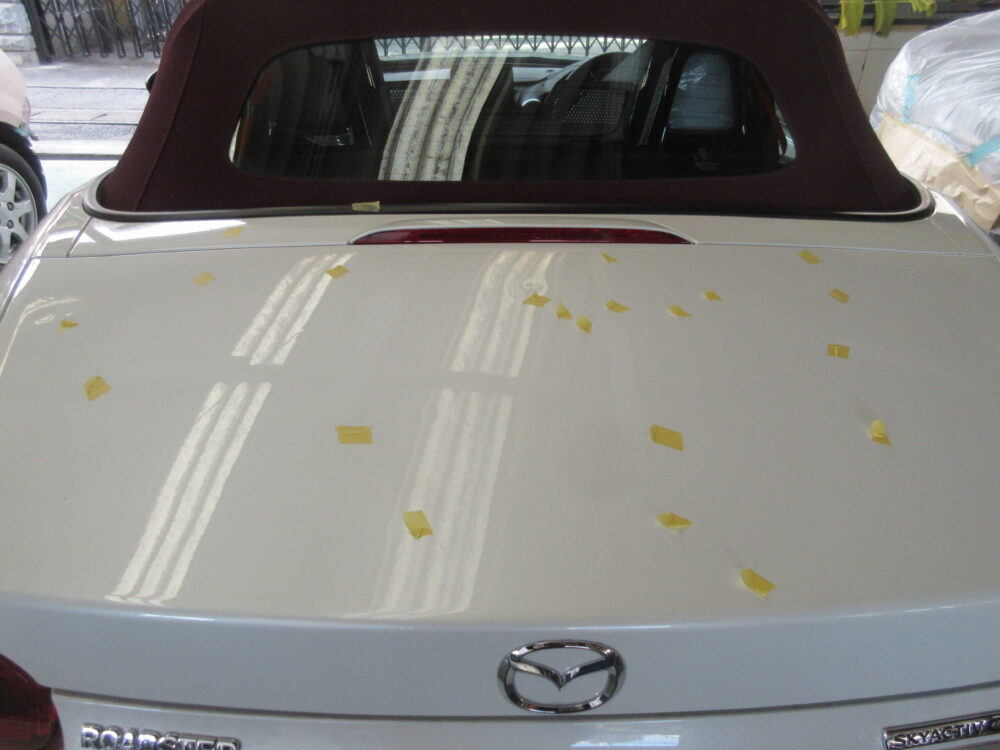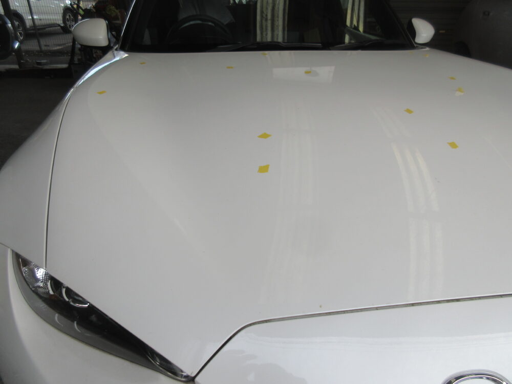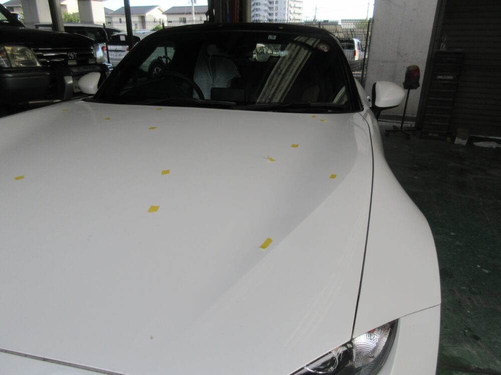 修理内容は雹害でボンネット、トランク交換。その他一回りへこみ鈑金塗装です。