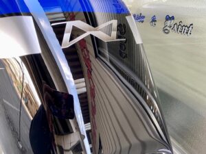 塗り終わったバンパーを組み替えてから磨くので、バンパーを磨くついでにヘッドライトも磨きます。曇っていたヘッドライトもスッキリきれいになりました。ありがとうございました。