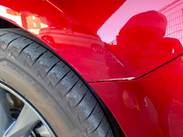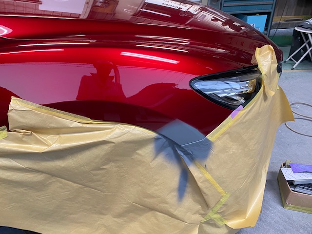 ボディと色が合っていなければ、合うまで微調整の繰り返しです。フェンダーの角ちょこっとの傷ですが