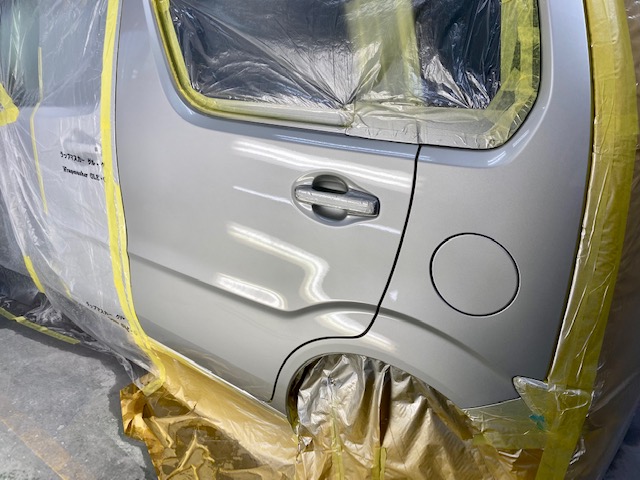 明日は定休日です。よろしくお願いします。今回は2台アップします。まずはワゴンRです。ボンネット左リアドア、クォーター修理です。塗ります。ベース塗り終わり。クリヤ終了です。完成は撮り忘れです🤣